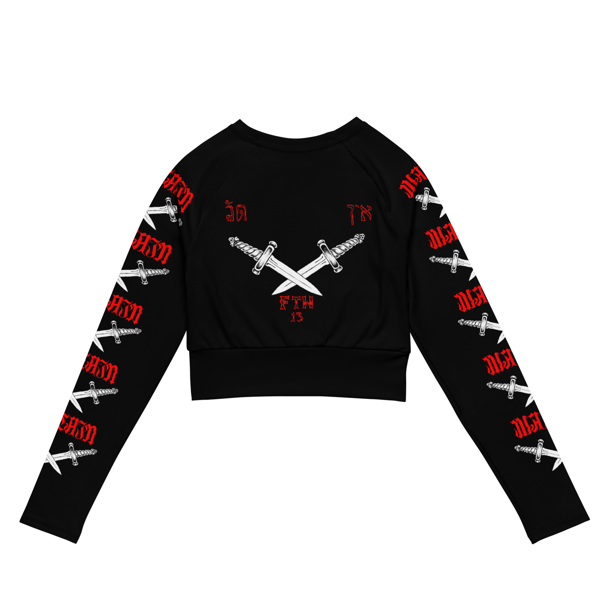 This versatile long sleeve crop top is made of breathable recycled polyester fabric that makes it as good for sports as it makes a great outfit for events!